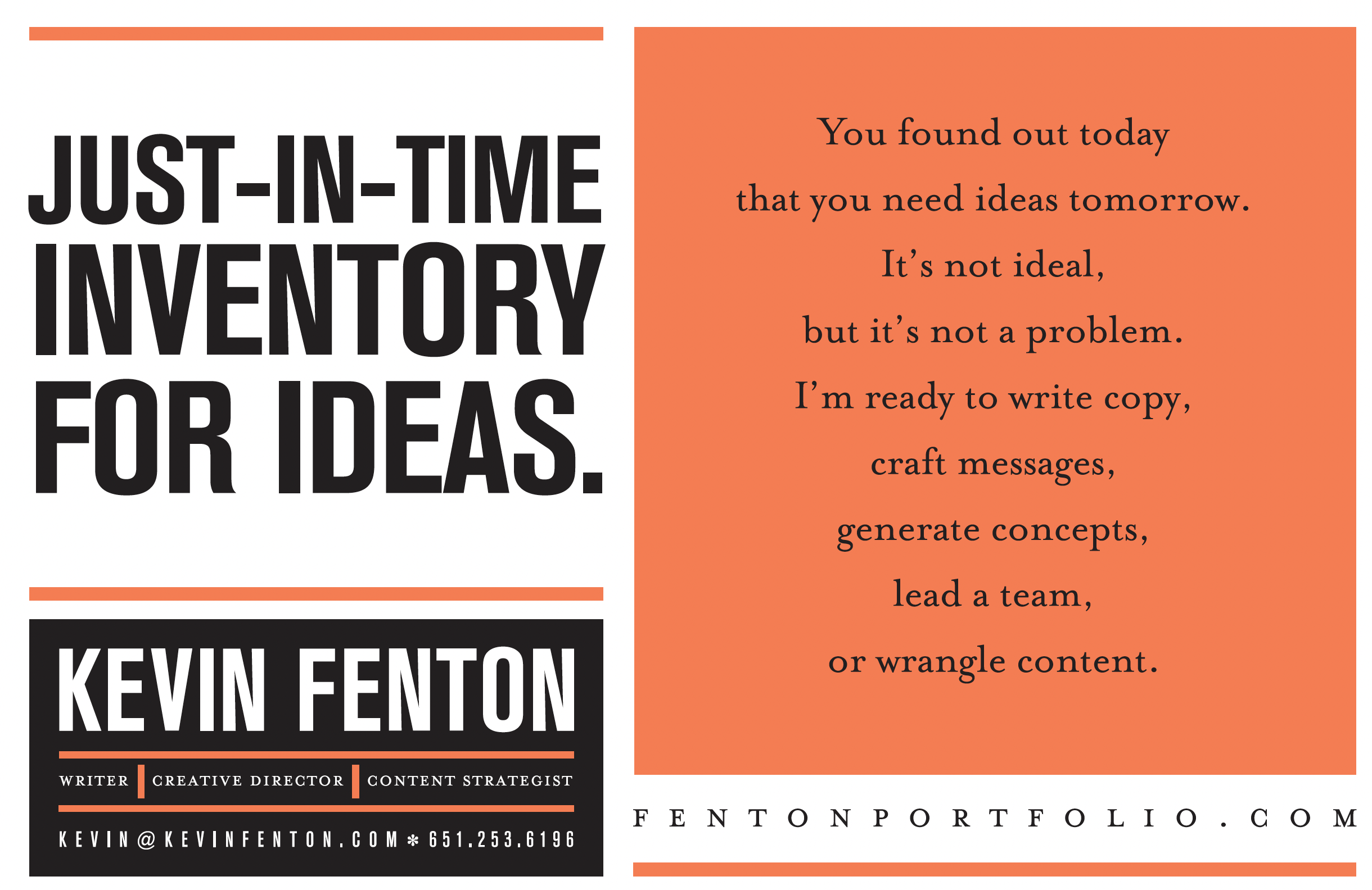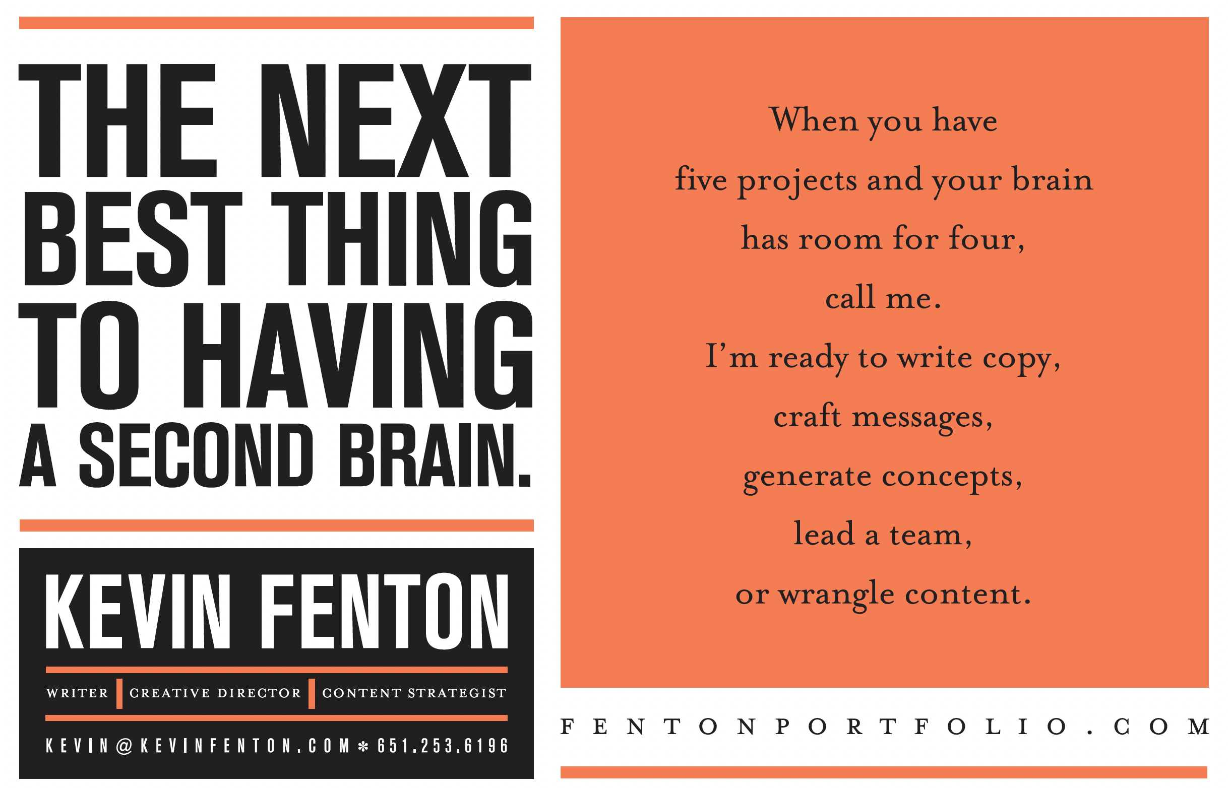 Multiple clients, multiple industries, multiple media, B2B, B2C. And one very demanding client—myself. (See final samples.)