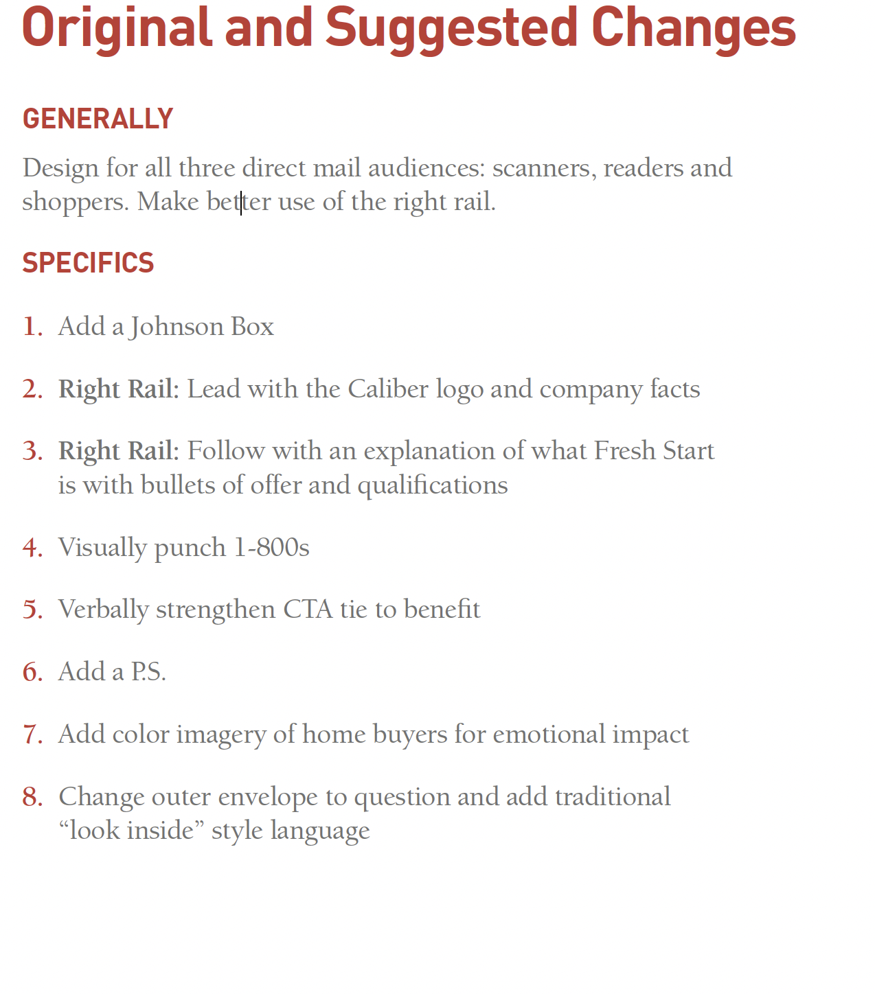 I bring a thoughtful approach rooted in proven direct mail techniques to every project. But I seldom capture my thinking. Fortunately, a Publicis Hawkeye asked us to document our recommendations.